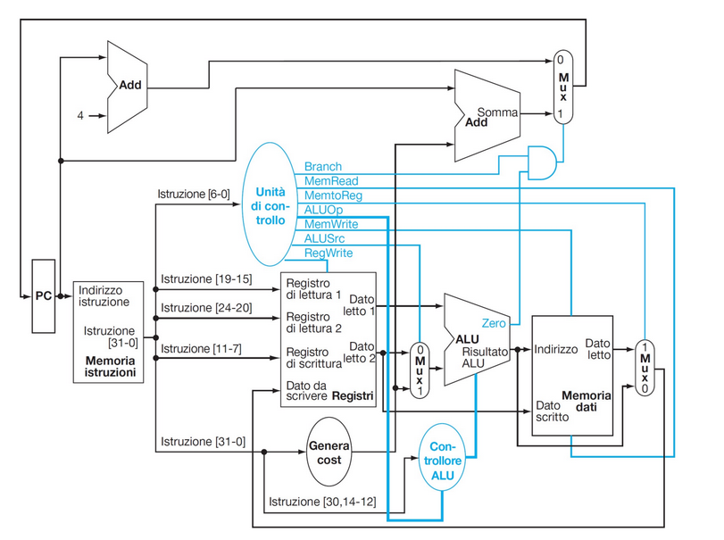 | Branch (anche detto PCSrc) | Il Program Counter si aggiorna normalmente (+4) | Il Program Counter esegue il salto |