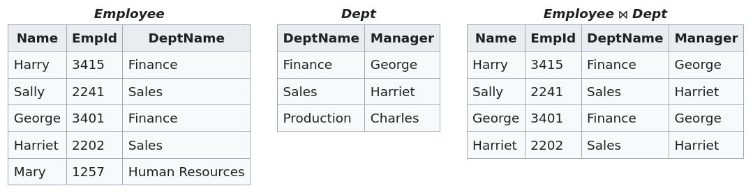 N.B.: Se le due tabelle hanno attributi con lo stesso nome, ma nessuna riga ha gli stessi valori su quegli attributi, allora non ci sono righe che soddisfano la condizione di join, quindi il join naturale è vuoto.