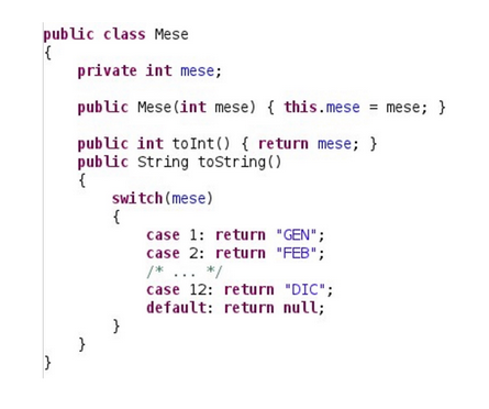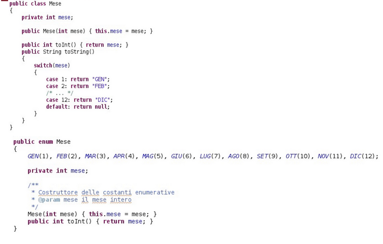 }N.B.: Non è possibile creare un oggetto del tipo enumerazione, però ogni costante enumerativa è un’istanza public e final; non se ne possono creare altre.