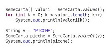 Per ogni enumerazione, il compilatore genera il metodo statico values() che restituisce un array delle costanti enumerative.