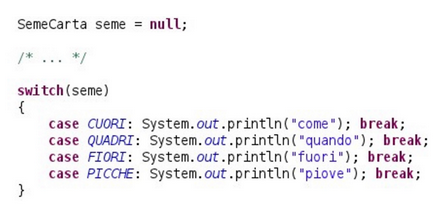 L’enumerazioni possono essere utilizzate all’interno di un costrutto switch.