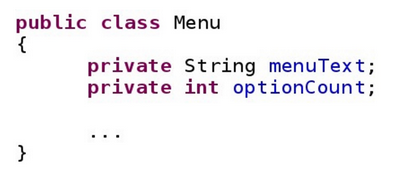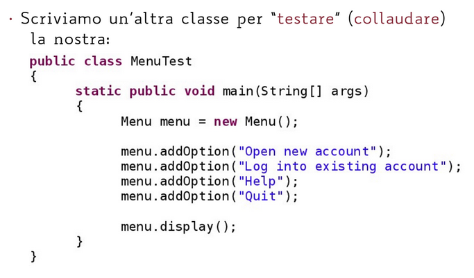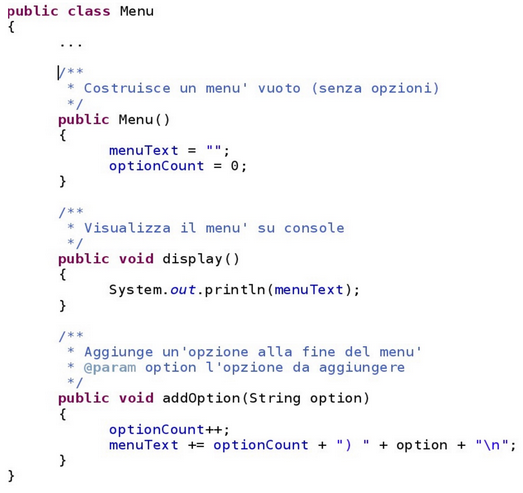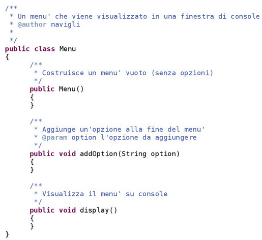 Bisogna realizzare la classe Menu, in grado di visualizzare un menù come questo: