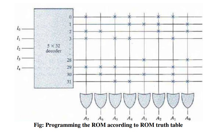 La ROM è un modulo standard che riceve in ingresso un indirizzo di memoria e passa in uscita i bit contenuti nella posizione a cui si riferisce l’indirizzo. è composta da un decodificatore (DEC) non standard collegato a una matrice di porte OR (ognuna viene usata per produrre un bit in uscita).